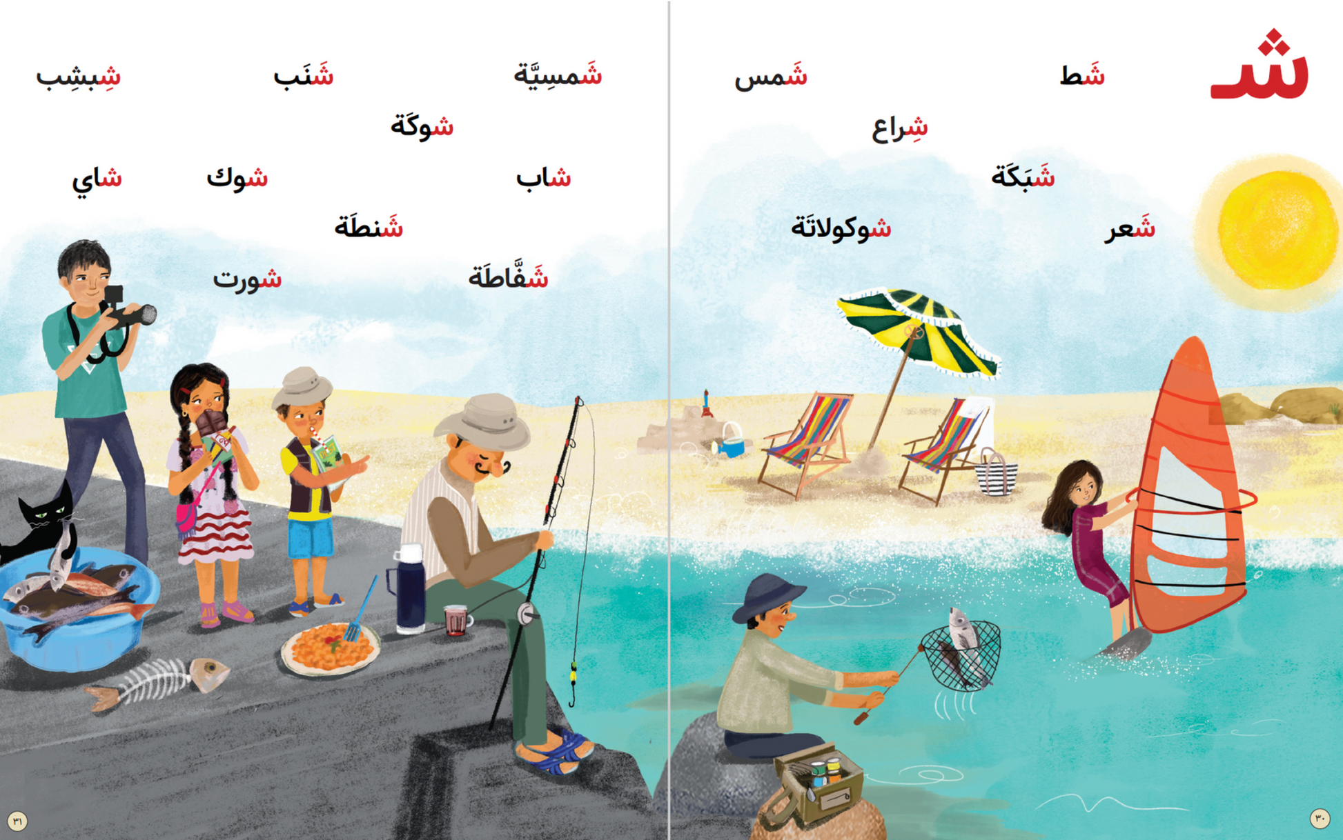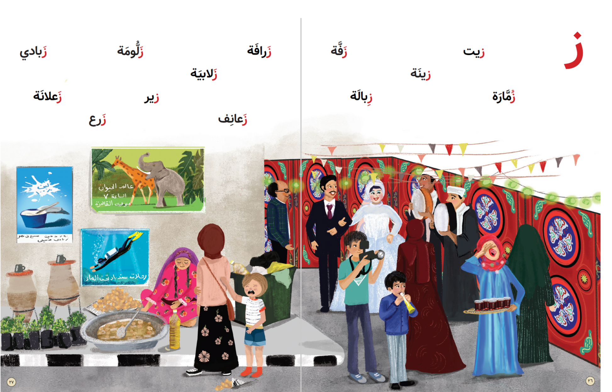 In some instances, the book presents words with vowels (or tashkeel) to reflect their a’amiya pronunciation instead of their fusHa pronunciation (such as سِلِّم versus سُلَّم), with the expectation that the child will become familiar with the fusha pronunciation at a subsequent learning stage.